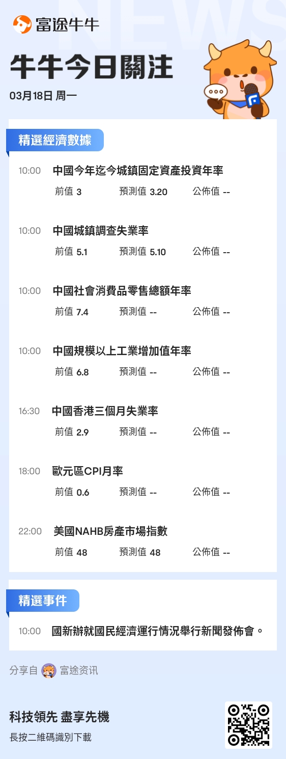 本周(3·18-3·22)重磅经济数据及财经事件如下:
