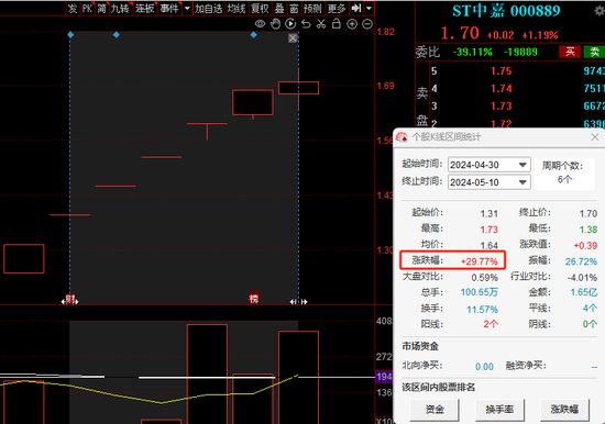 在4月30日申请撤销风险警示后,ST中嘉一度完成5连板,至今涨幅已近30%。