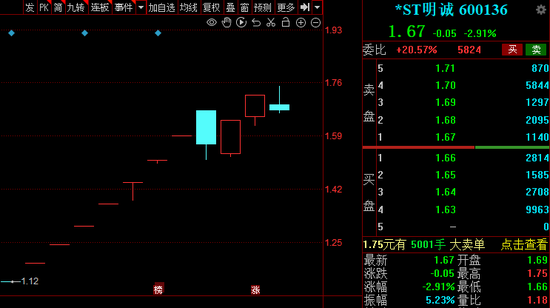 而同日提交申请的*ST明诚的股价则先行得更为明显,自4月23日以来,一度出现7连板。5月10日冲高回落,收跌2.91%。