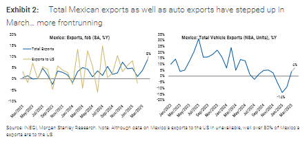 报告表示,历史上,关税政策通常会在几个月后推高物价,并在几个季度后降低经济增长。而航运数据证实了这种干扰正在发生,其影响尚未完全显现。这也验证了大摩认为美联储应保持耐心的观点,与市场对6月降息的预期相悖。